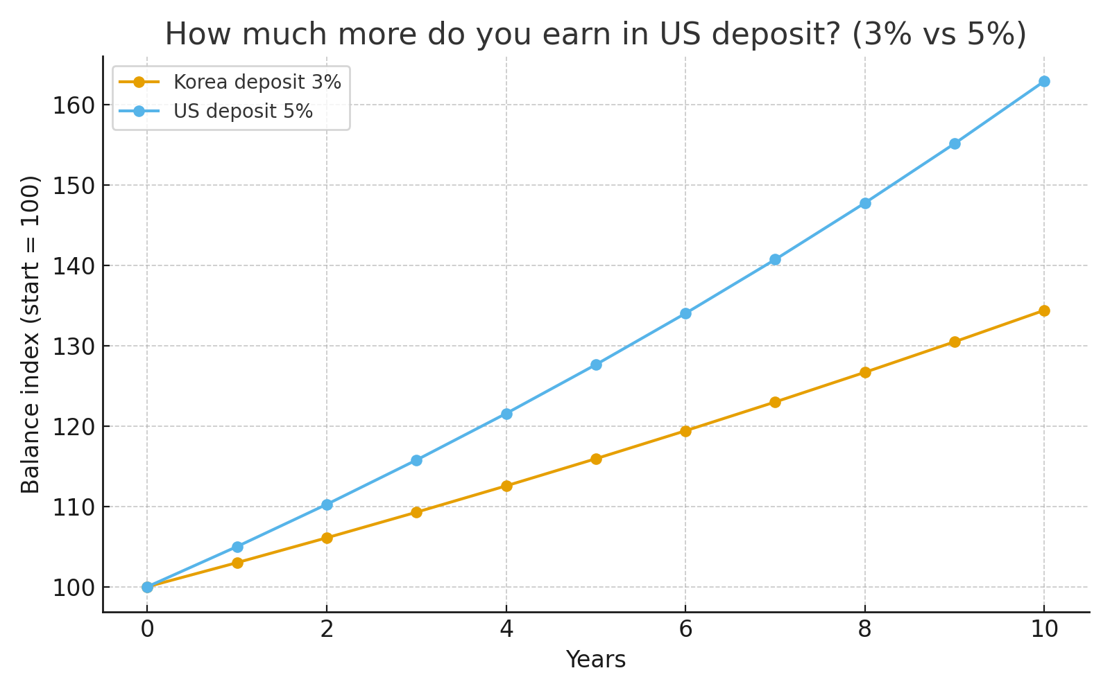 그렇다면 실제로 미국에 예금을 넣으면 얼마나 더 벌 수 있을까요?